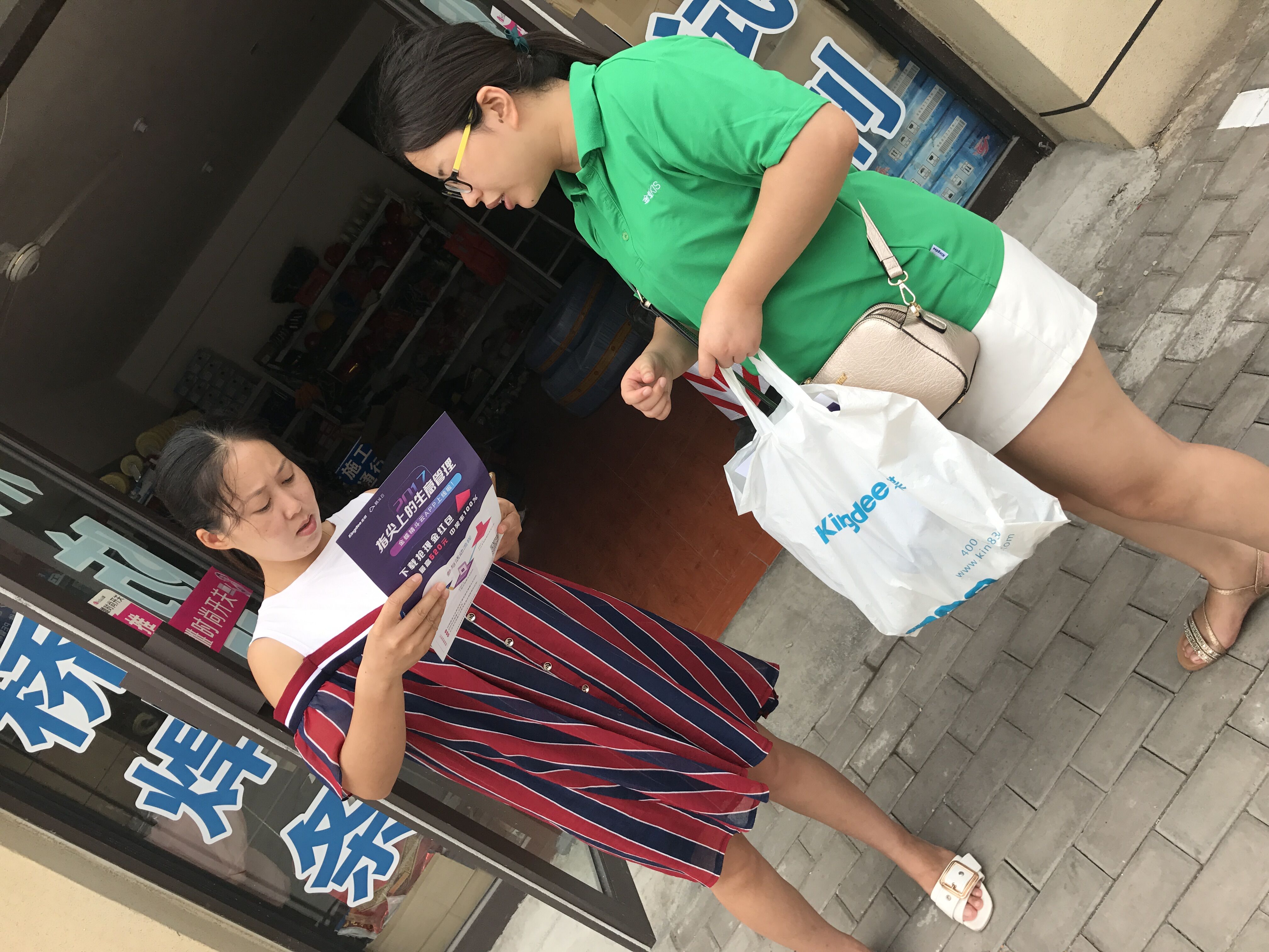 是分街道上門進行推廣的方式,發單頁給每家商鋪的同時,工作人
